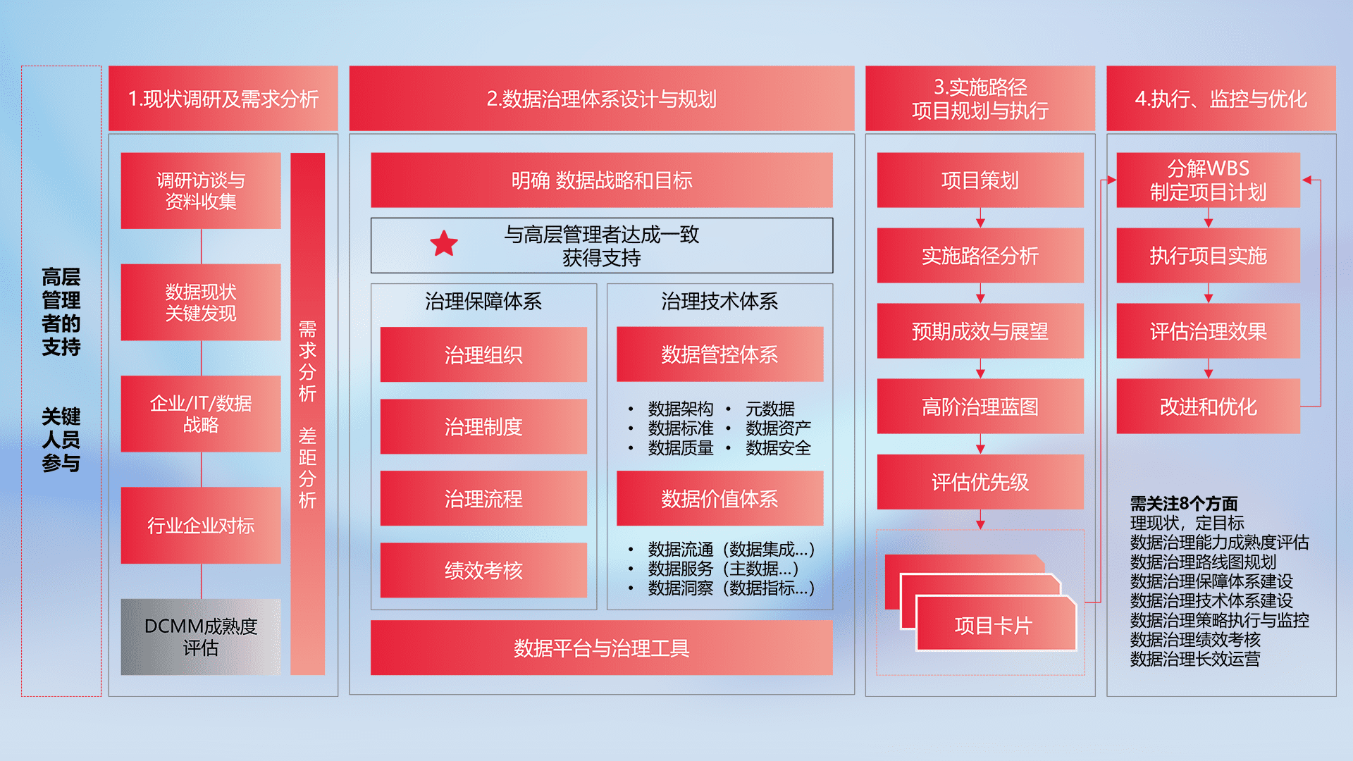 制定并执行统一的数据标准,,规范数据定义和格式,,,消除冗余和不一致性,,,实现跨部门和跨系统的数据一致性,,,为企业提供标准化的数据基础。。
